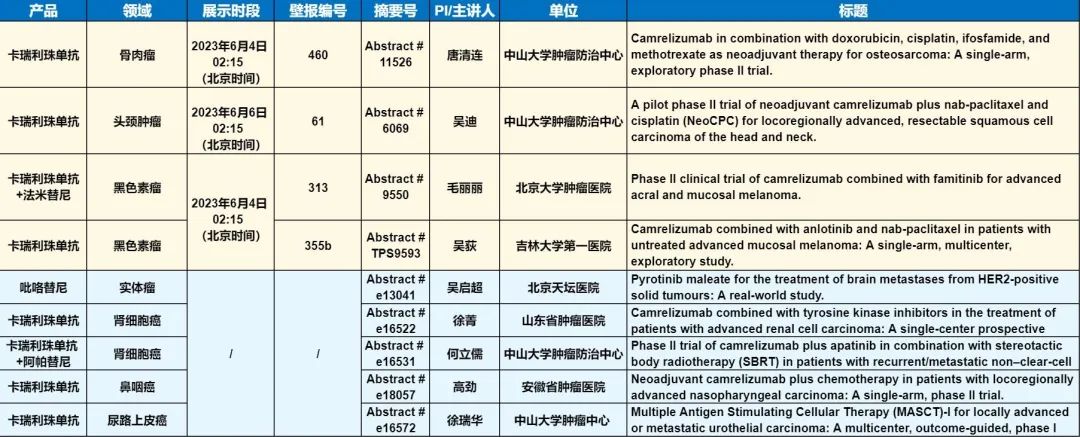此外,在头颈肿瘤、黑色素瘤、骨肉瘤、鼻咽癌、肾细胞癌、尿路上皮癌等多个领域,卡瑞利珠单抗、吡咯替尼等产品相关研究一共入选了4项壁报展示和5项线上发表,彰显了利来w66国际医药强大的自主研发综合实力。